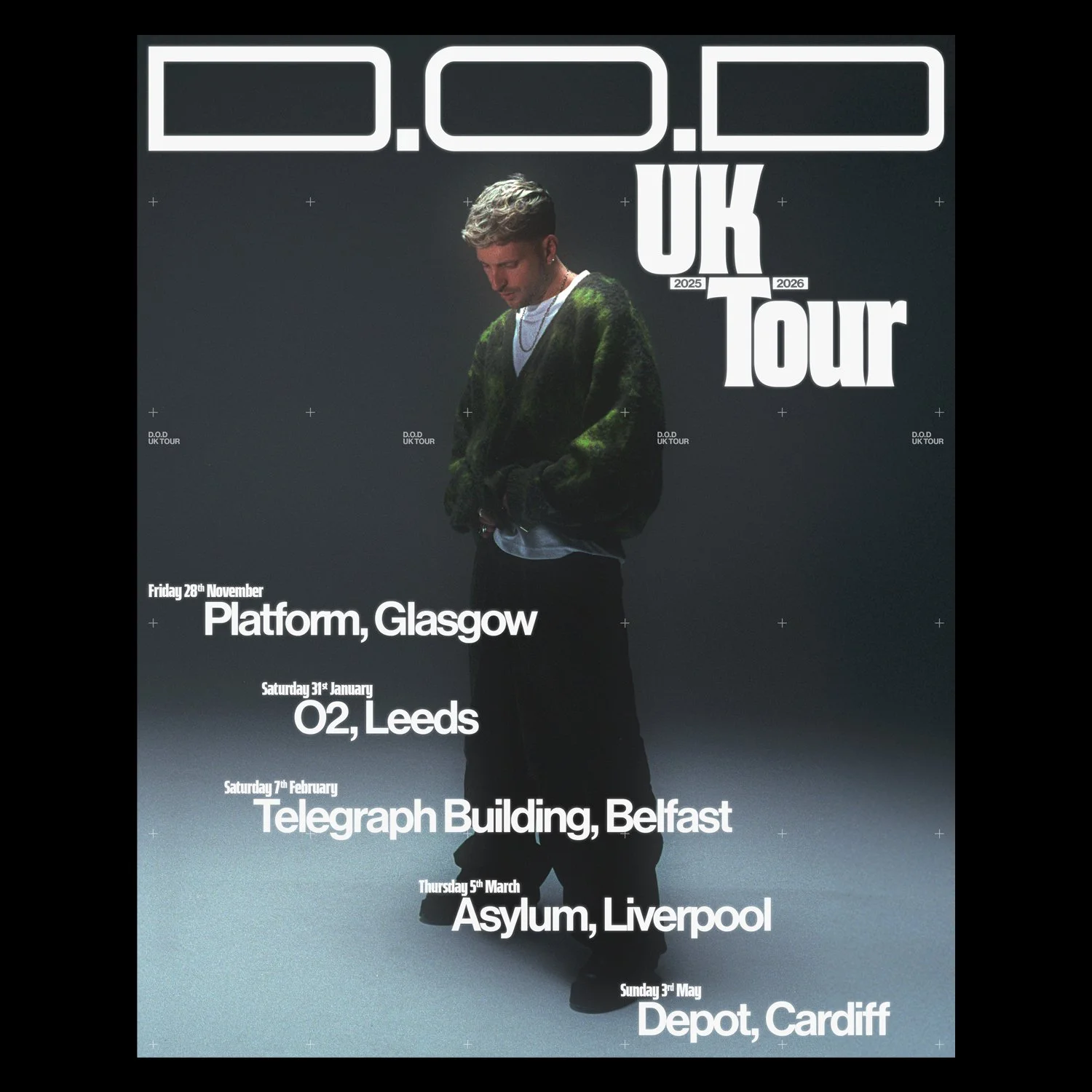 Working closely with UK-based DJ D.O.D, a dynamic and flexible visual identity was developed to support his US and EU tour. Centered around a responsive typographic system, the design maintained visual interest while adapting seamlessly across digital platforms, printed materials, and large-scale onstage visuals. The system’s fluid motion behaviour and cohesive visual language captured the intensity of D.O.D’s sound and performance energy, creating a unified aesthetic throughout the tour experience.